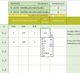 - Aggiunte altre categorie catastali e possibilità di selezionare le categorie C/2 e C/6 anche non pertinenziali. Da questa versione in poi, per inizializzare una unità immobiliare come pertinenza, è necessario esclusivamente selezionare il checkbox della colonna K nel foglio IMMOBILI (UI NON AGEV.)