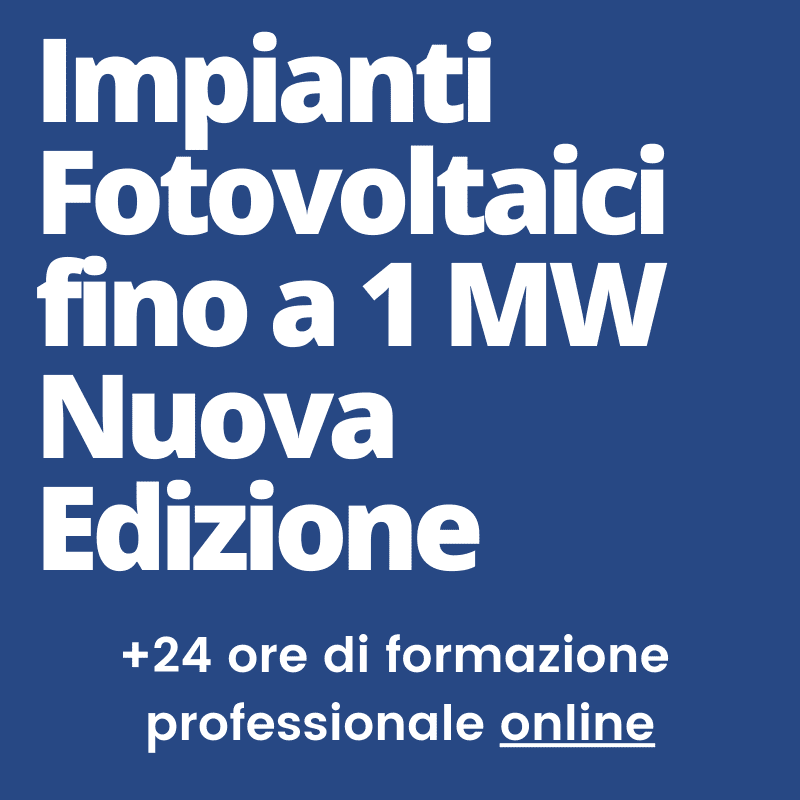 +24 ore di formazione professionale (nuova edizione 2025) per imparare a progettare gli impianti fotovoltaici, passo passo, fino alla pratica di allaccio (iter semplificato e iter ordinario), messa in esercizio, gestione e manutenzione.